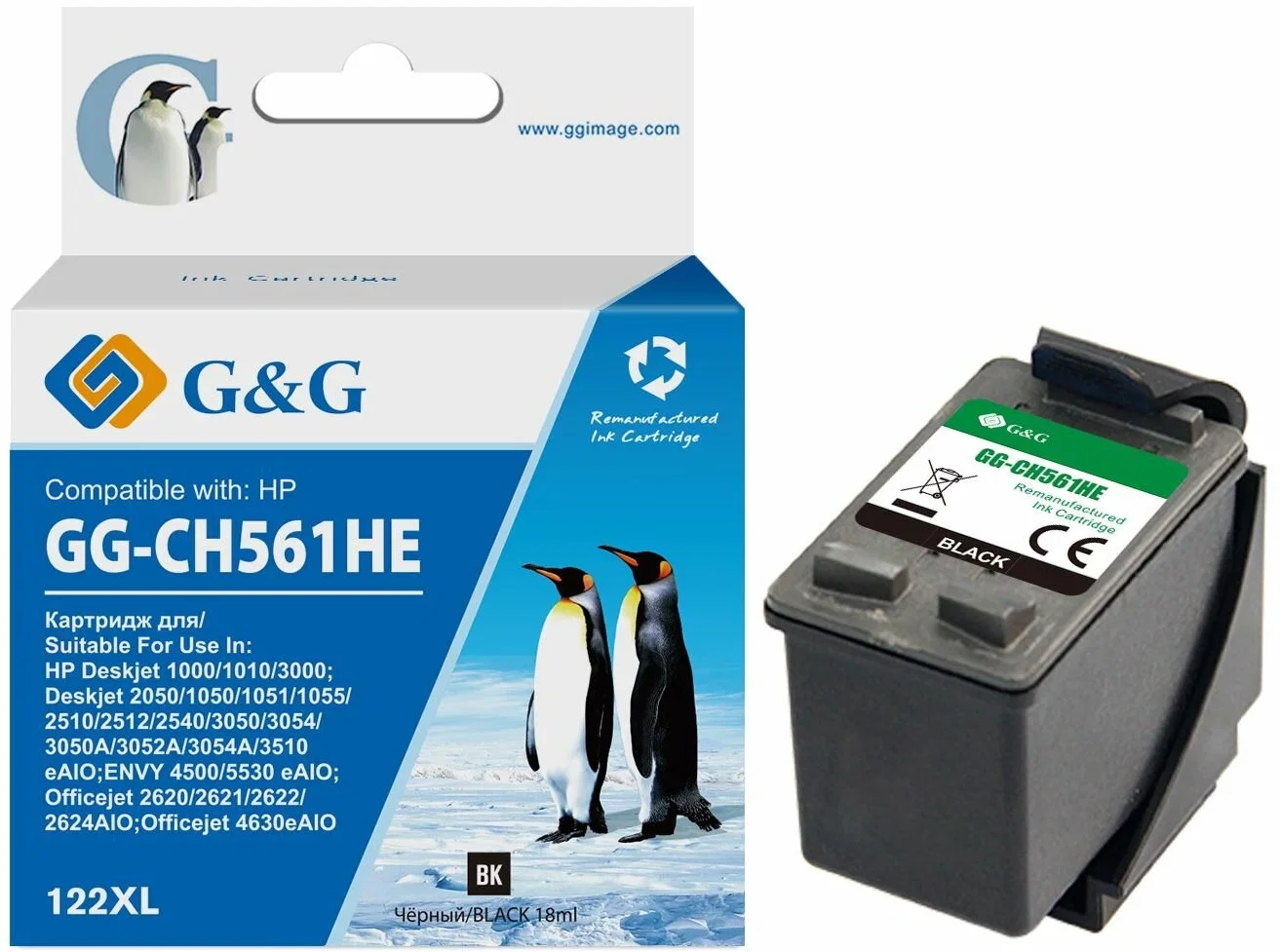 Картридж струйный G&G GG-CH561HE 122 черный (18мл) для HP DJ 1050A/2050A/3000