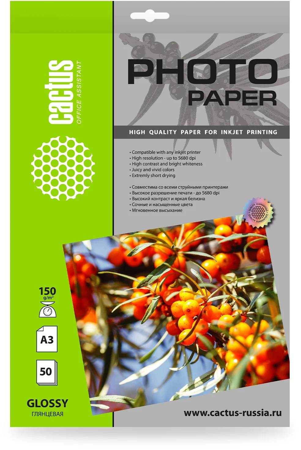 Фотобумага Cactus CS-GA315050 A3/150г/м2/50л./белый глянцевое для струйной печати