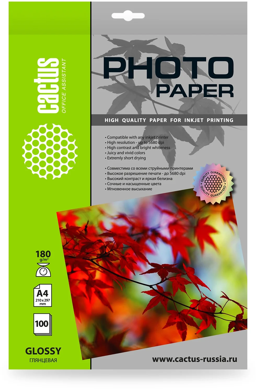 Фотобумага Cactus CS-GA4180100 A4/180г/м2/100л./белый глянцевое для струйной печати