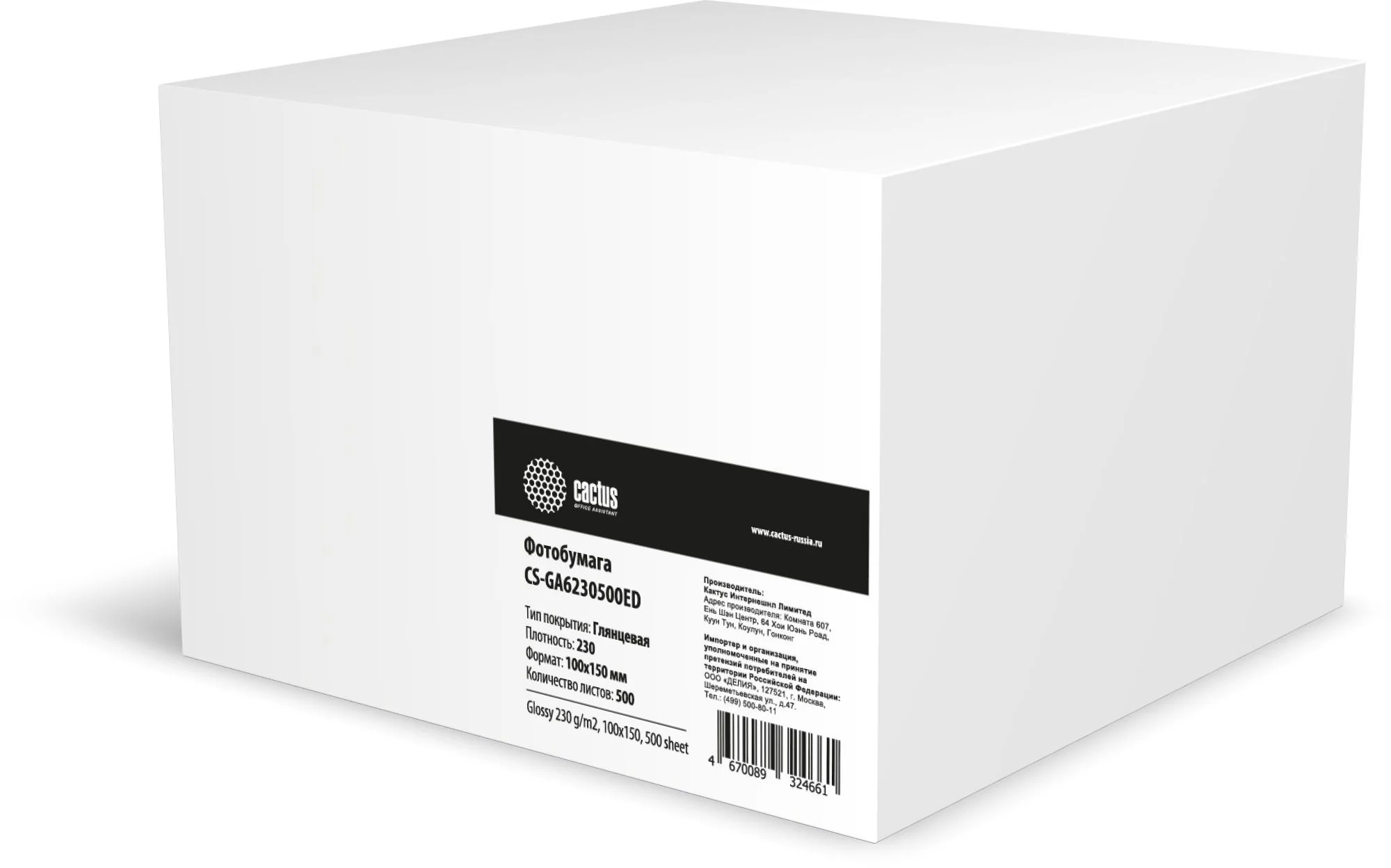 Фотобумага Cactus CS-GA6230500ED A6/230г/м2/500л./белый глянцевое для струйной печати