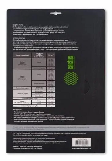 Фотобумага Cactus Prof CS-HGA326020 A3/260г/м2/20л./белый глянцевое для струйной печати