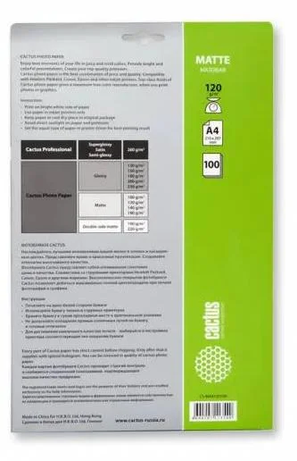 Фотобумага Cactus CS-MA4120100 A4/120г/м2/100л./белый матовое для струйной печати