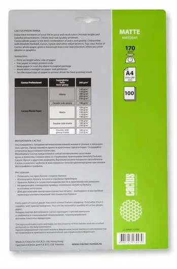 Фотобумага Cactus CS-MA4170100 A4/170г/м2/100л./белый матовое для струйной печати