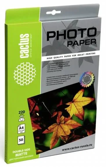 Фотобумага Cactus CS-MA422050DS A4/220г/м2/50л./белый матовое/матовое для струйной печати