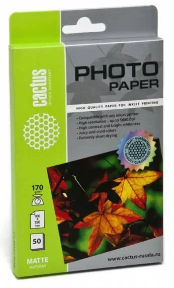 Фотобумага Cactus CS-MA617050 10x15/170г/м2/50л./белый матовое для струйной печати