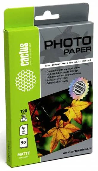 Фотобумага Cactus CS-MA619050 10x15/190г/м2/50л./белый матовое для струйной печати