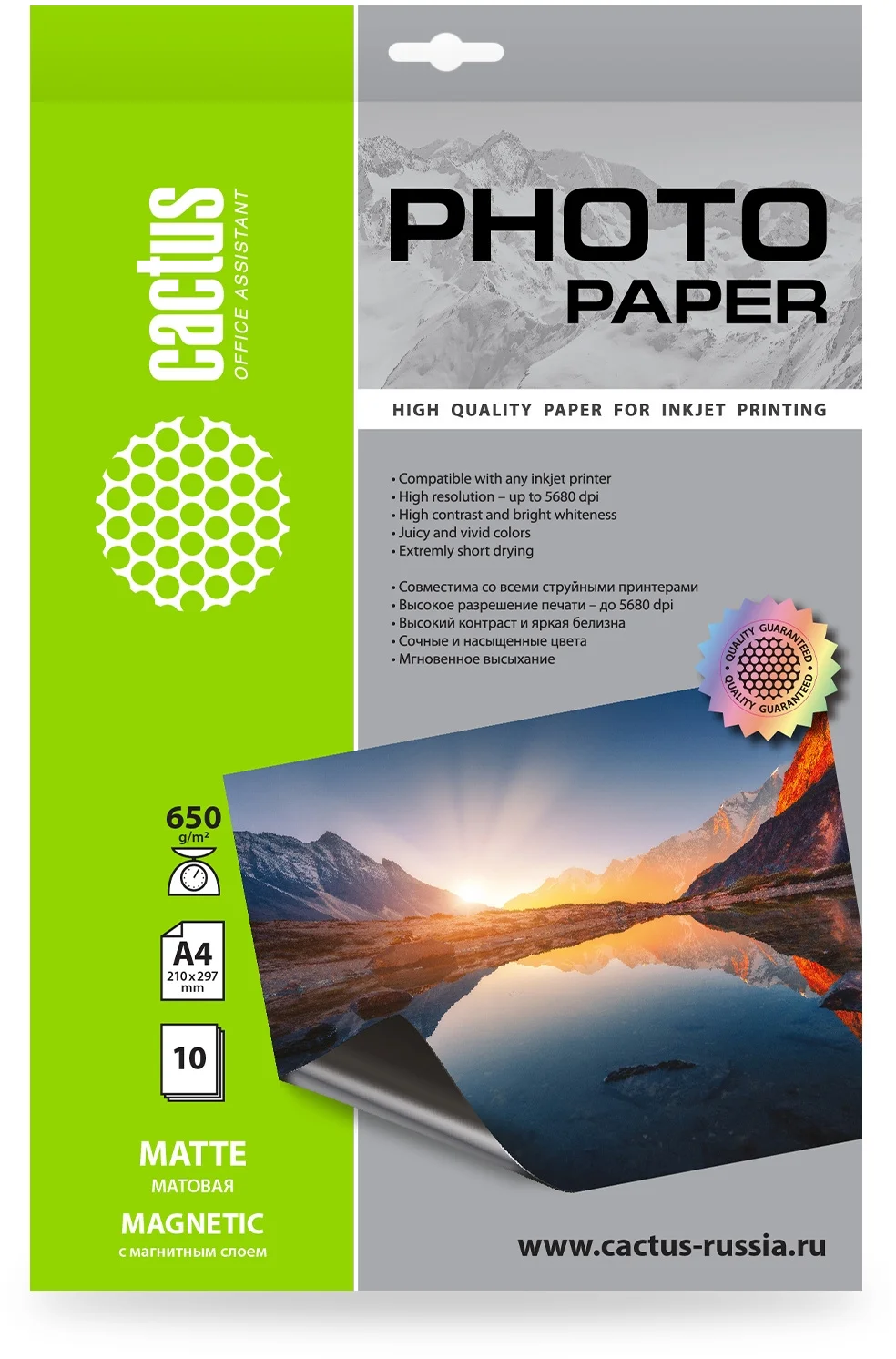 Фотобумага Cactus CS-MMA465010 A4/650г/м2/10л./белый матовое/магнитный слой для струйной печати