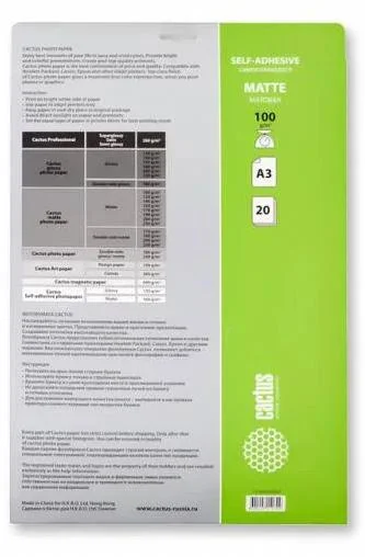 Фотобумага Cactus CS-MSA310020 A3/100г/м2/20л./белый матовое самоклей. для струйной печати
